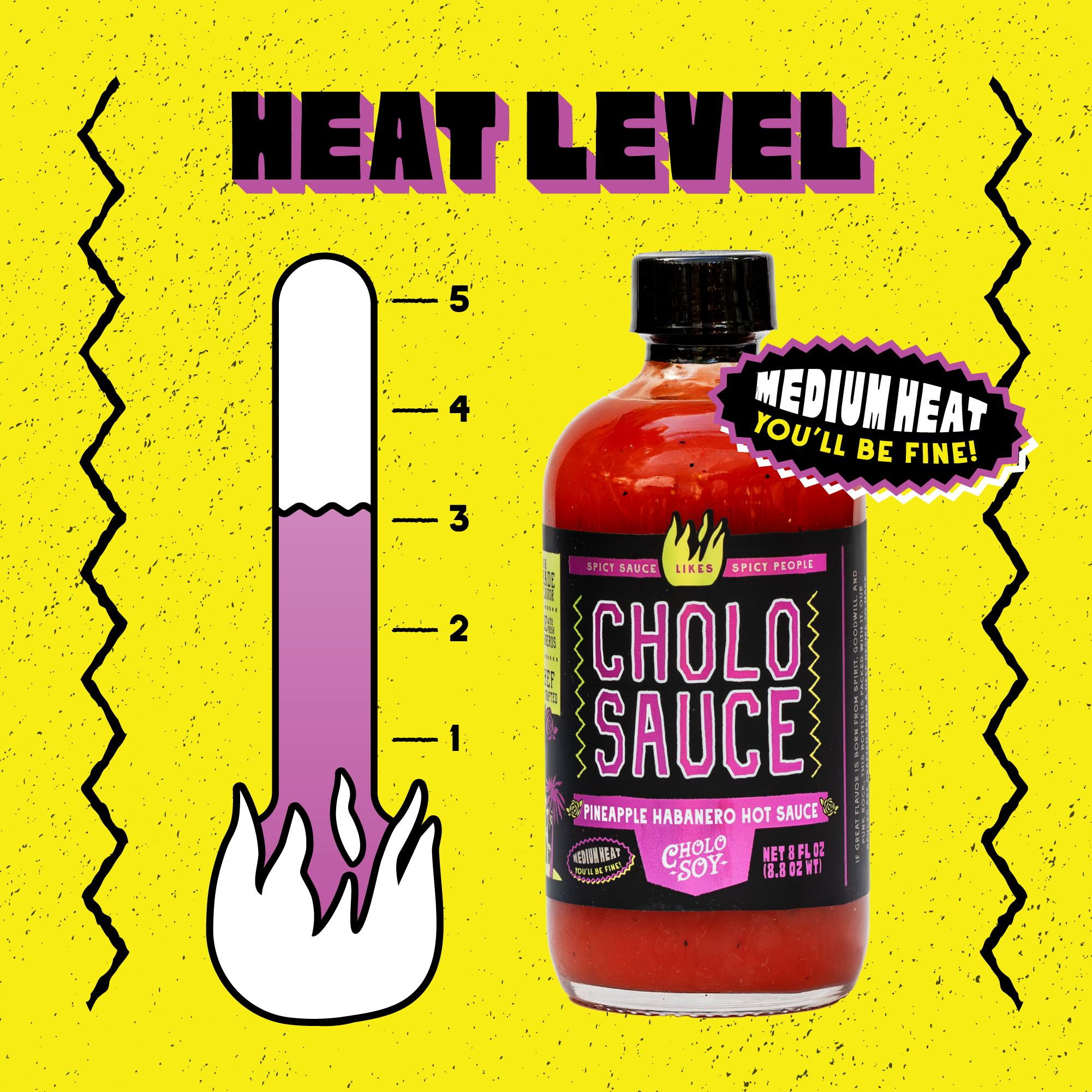 We get the question all the time — how hot is it? Here's the deal. Cholo Sauce packs genuine habanero heat, but Chef Clay built this recipe around flavor first. The roasted peppers bring depth, the pineapple brings sweetness, and the habanero ties it all together with a warm, steady kick. It's not mild. It's not trying to prove anything. It's right in that sweet spot where you actually taste your food and enjoy the ride.